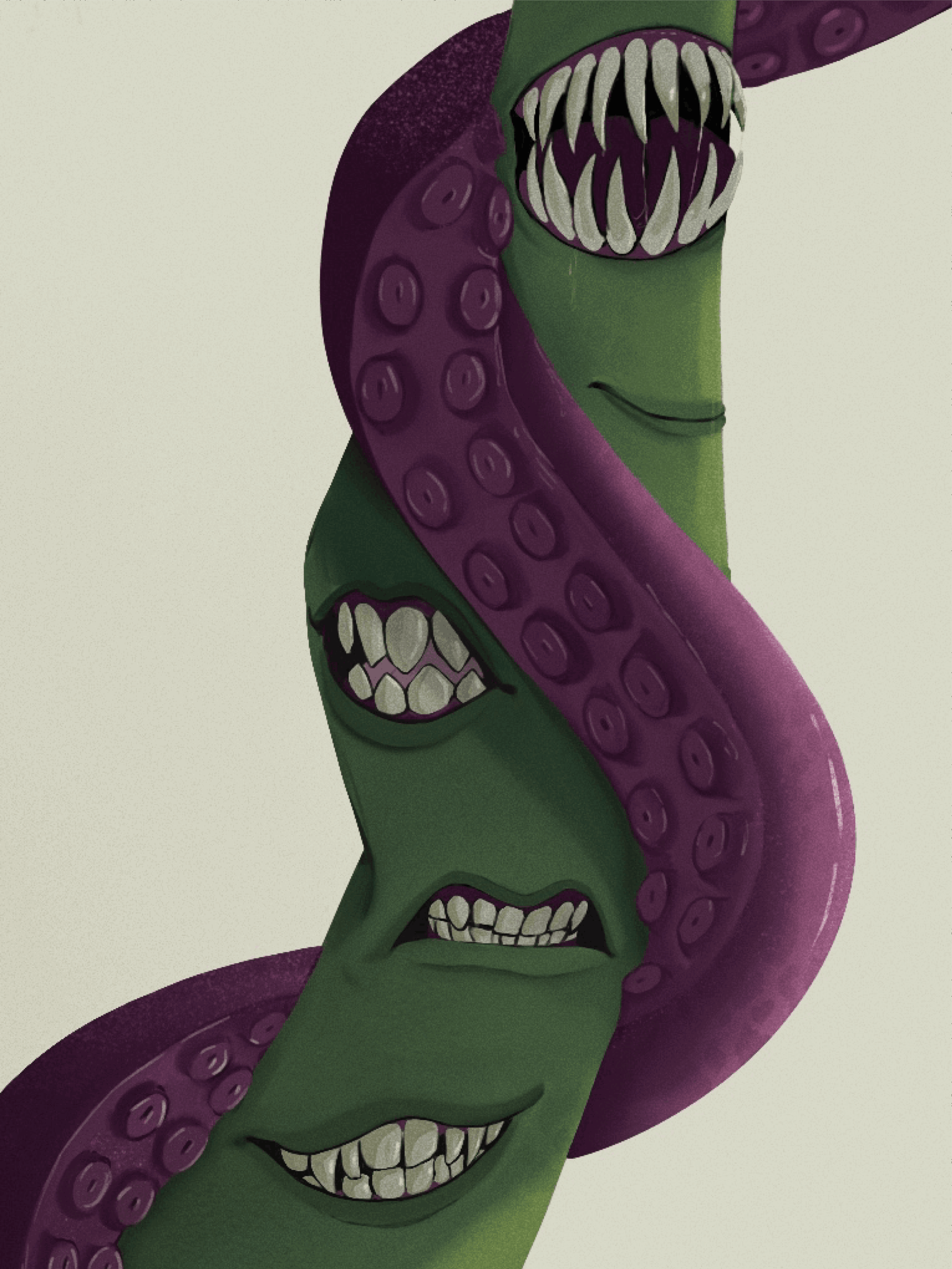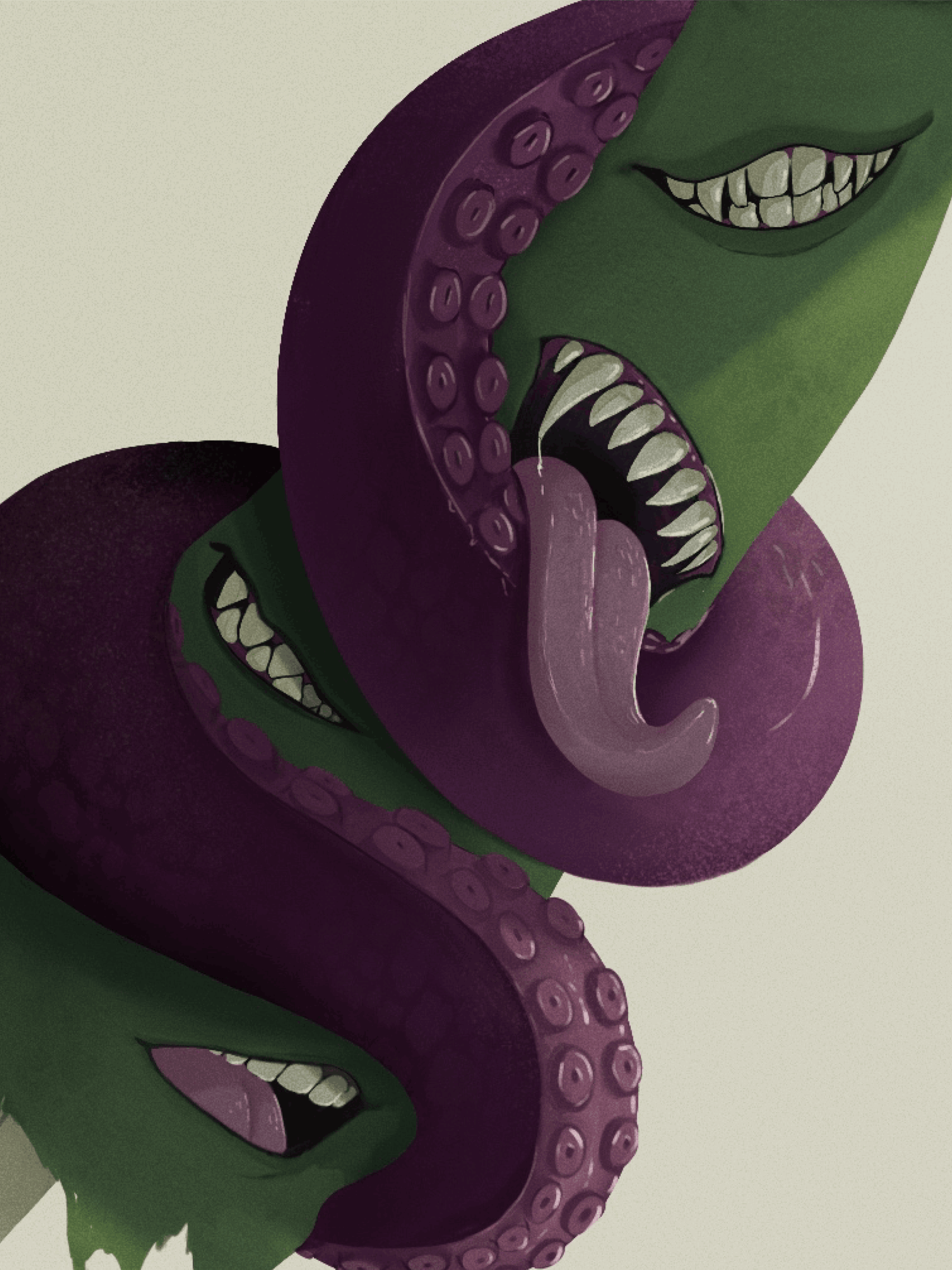 Echomaker was commissioned by the Dungeon Master of a D&D group who wanted a strong visual for a unique item in his campaign. The artifact is the torn-off arm of a troll, covered in mouths from different creatures, each having its own voice and personality. A tentacle grows from the arm and reaches toward its finger, referencing the gesture from Michelangelo’s Creation of Adam.